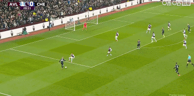 第2分钟,贝利助攻,道格拉斯-路易斯门前巧射破门,维拉1-0切尔西