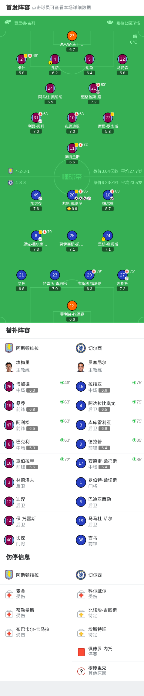 北京时间3月5日英格兰足球顶级联赛 第29轮,阿斯顿维拉主场对阵切尔西。上半场,路易斯开场闪击,随后,佩德罗连入两球,逆转比分。下半场,佩德罗助攻,帕尔默禁区内抽射破门。加纳乔无私助攻,佩德罗推射空门,上演帽子戏法。最终比分阿斯顿维拉 1-4 切尔西。