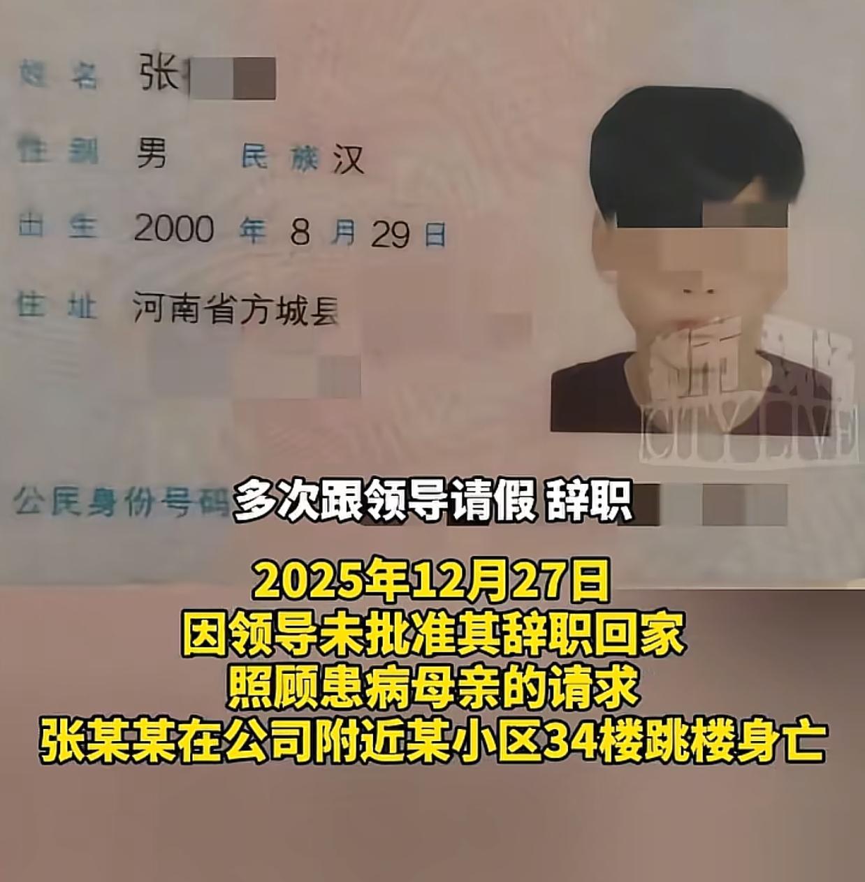爱游戏网页-痛心!河南帅哥小张去世,仅25,因母亲病重公司不批假想不开跳楼