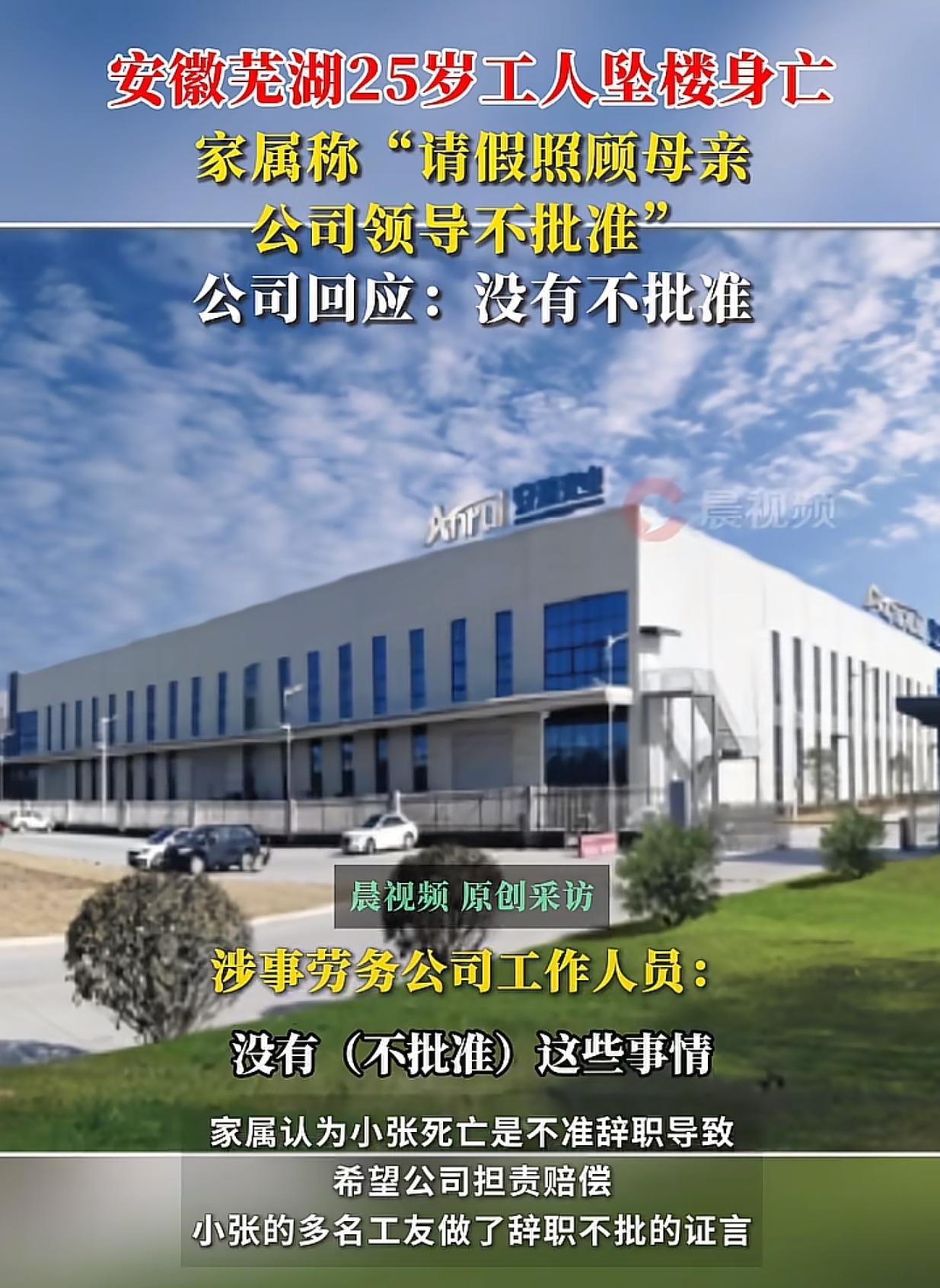 1月13日,一名河南的网友在网上发文求助,称自己的小舅子“小张”在安徽芜湖一家公司上班期间跳楼身亡,年仅25岁,而小张之所以跳楼的原因则令人十分痛心。据小张的姐夫透露,小张之所以会选择用跳楼这么决绝又惨烈的方式自杀,是因为他的母亲生病了,且病的有些严重,小张向公司请假,想要回河南老家照顾母亲。但公司并没有批准小张的请假请求,后面小张又提出了辞职,想要用辞职的...