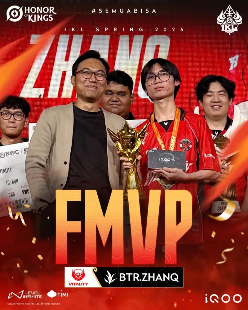 在日前结束的IKL印尼联赛春季赛总决赛中,BTR以4-1的战绩战胜对手DMT,斩获IKL春季赛总决赛冠军,赛后队内打野选手ZhanQ获得FMVP
